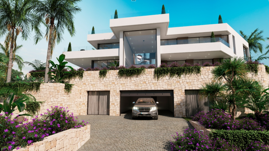 This luxury villa in the prestigious Playa de Las Rotas neighborhood in Dénia offers panoramic views of the Mediterranean Sea. With five bedrooms, en-suite bathrooms, an infinity pool, fitness room, wine cellar, and saunas, it combines modern design with natural elements. It also features a fully equipped summer kitchen with a gas barbecue, making it the ideal home for those seeking luxury and comfort by the coast.